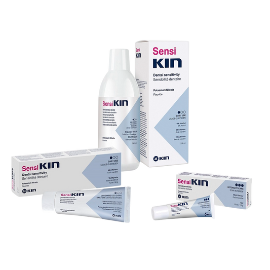 Sensikin Gel A targeted pain-relief oral gel designed specifically to alleviate severe tooth sensitivity—especially when normal brushing becomes uncomfortable or painful. How it works: The high potassium nitrate content quickly calms nerve sensitivity, while fluoride fortifies your teeth against...Regular price Dhs. 29.00Regular priceUnit price perSale price Dhs. 29.00 -